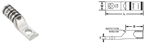 | LCAS3/0-56-X | 3/0 AWG | 5/16 | 0.96 | 0.83 | 0.13 | 1.97 | Orange | P50 | 14 | 50 | 7/8 |